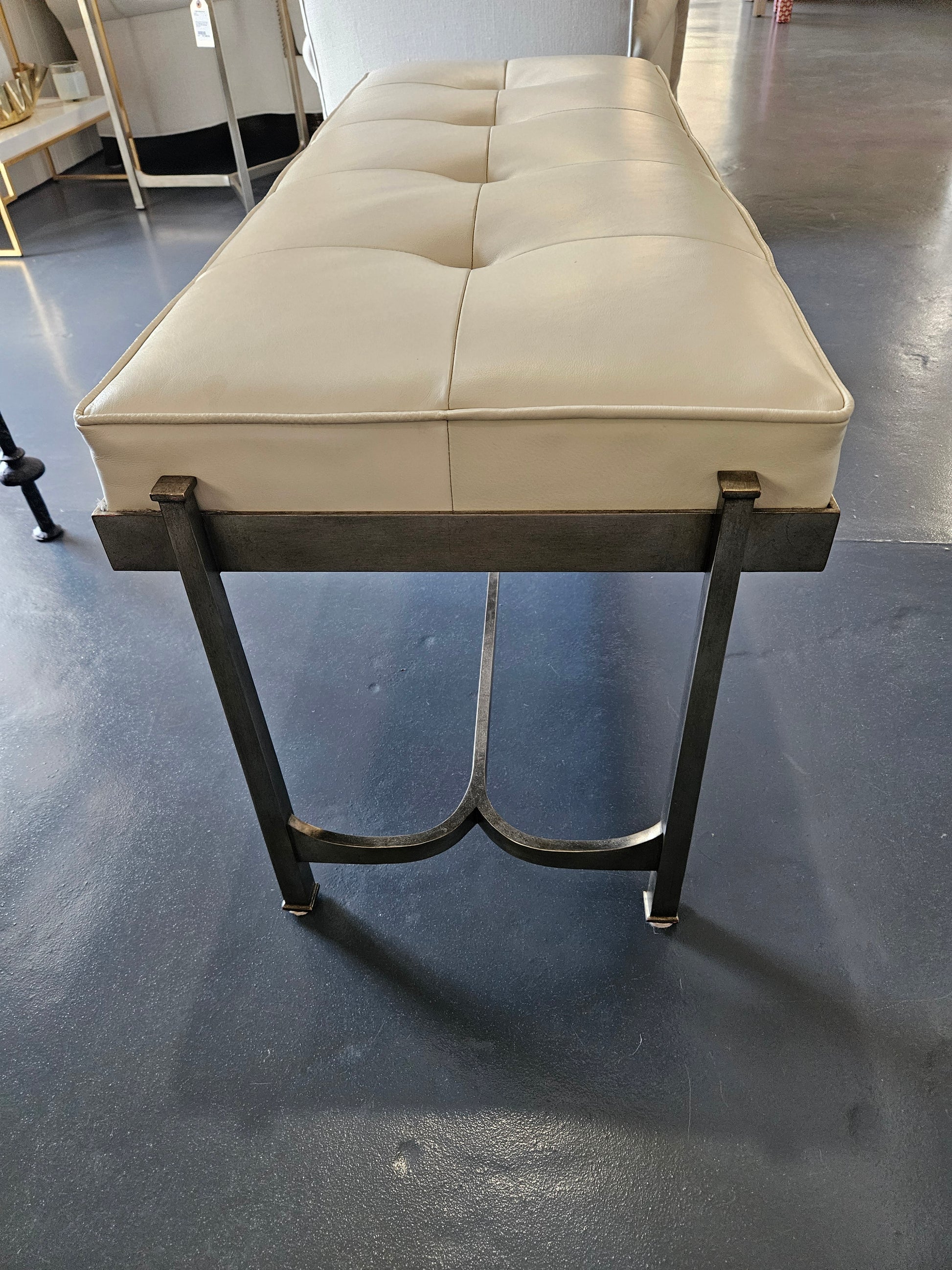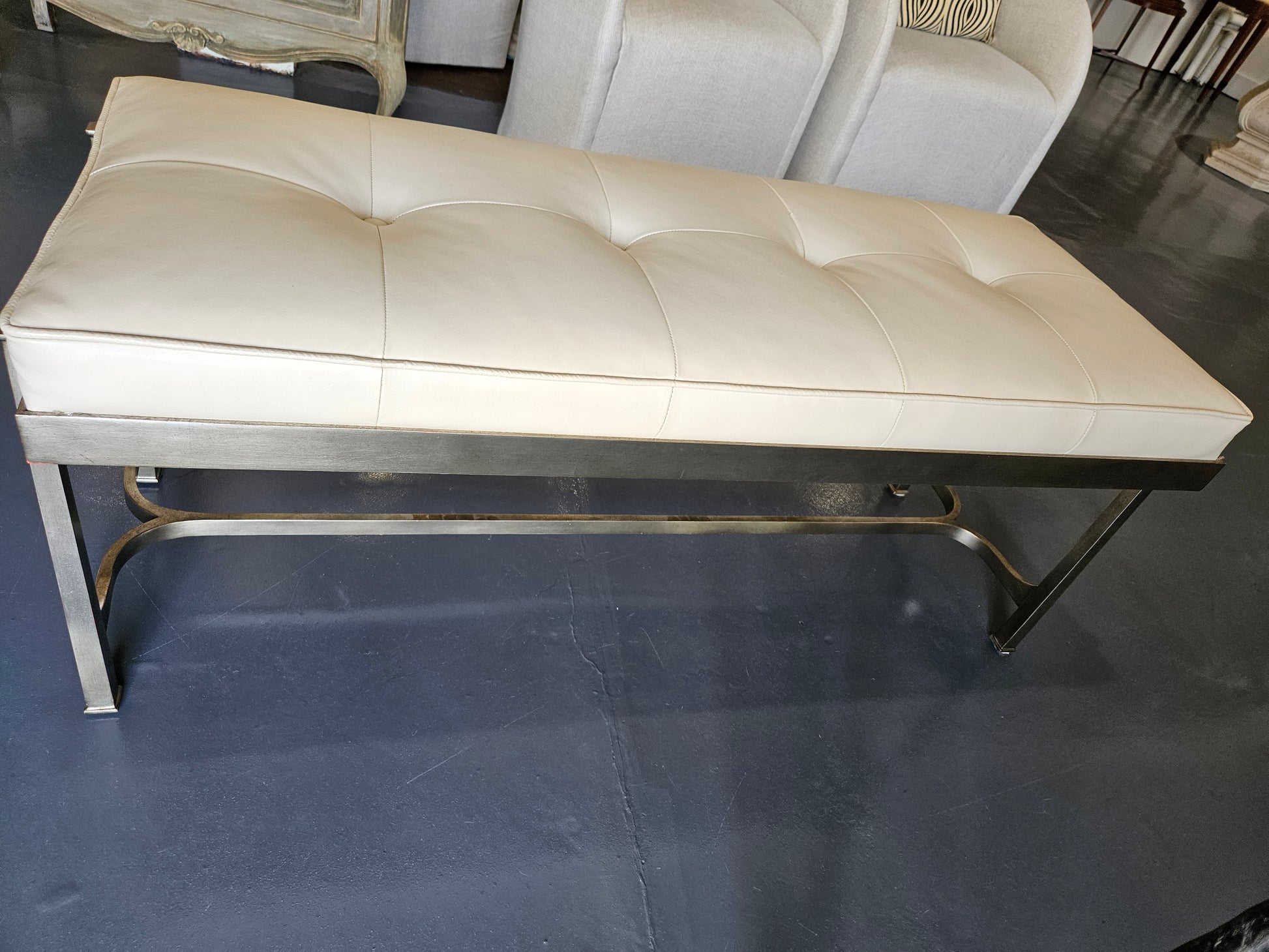Wrought Iron - Silver Iron & Leather Bench by Jonathan Charles 48" L X 18" D X 19.5"H