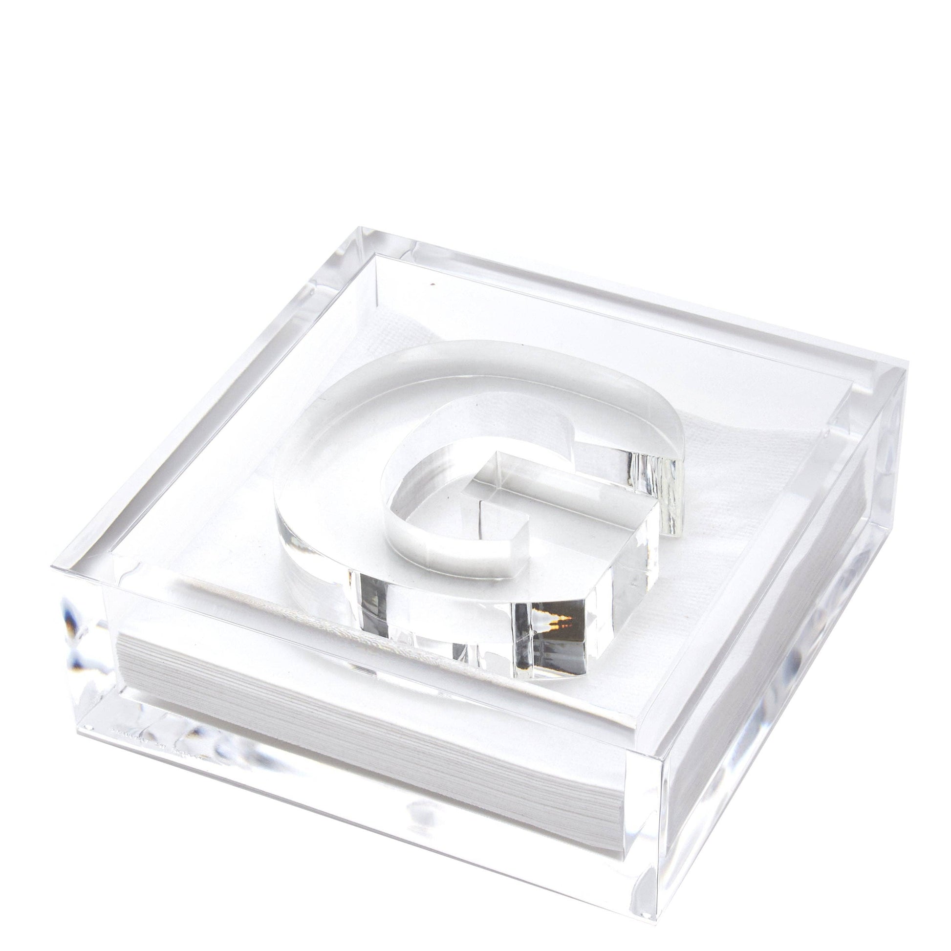 Personalize cocktail hour with our thick, stylish initial napkin holder. Comes with white napkins.