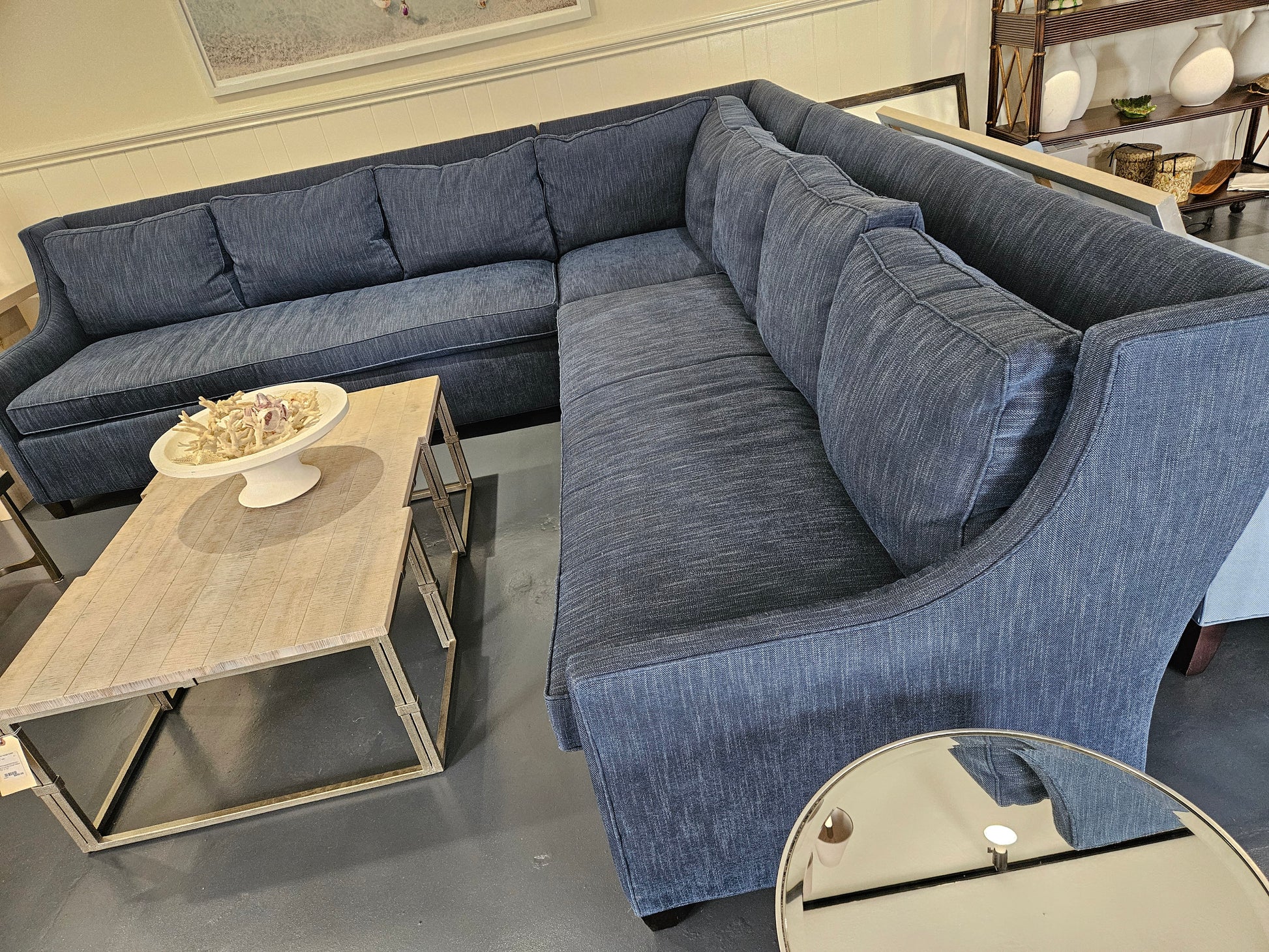 Blue denim Perennials Performance fabric. The size is 126"X123